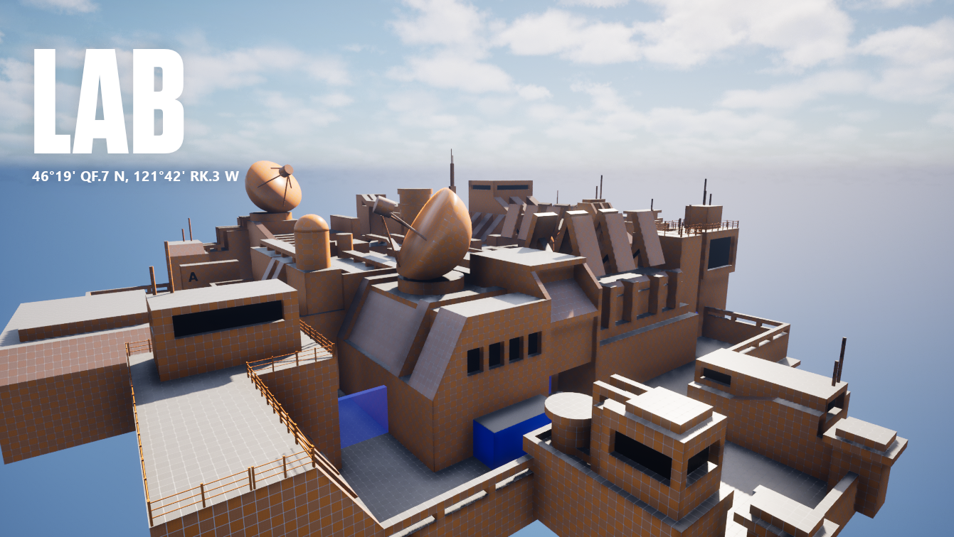 A map concept for VALORANT featuring a functional elevator that transports players between vertical parts of the map.